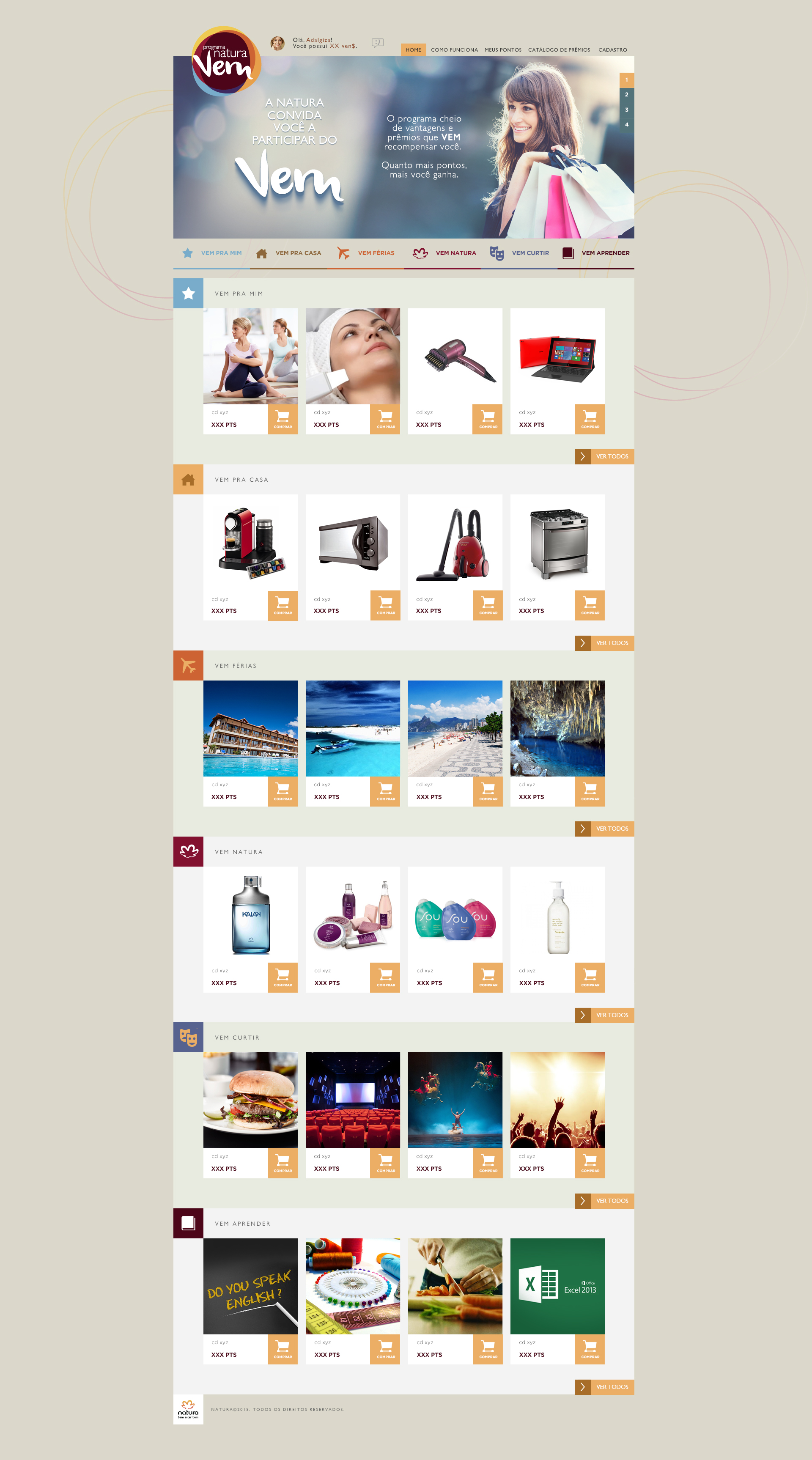 Possuía uma mecânica especifica, que possibilitava a troca de pontos por produtos dentro da plataforma Natura Vem.