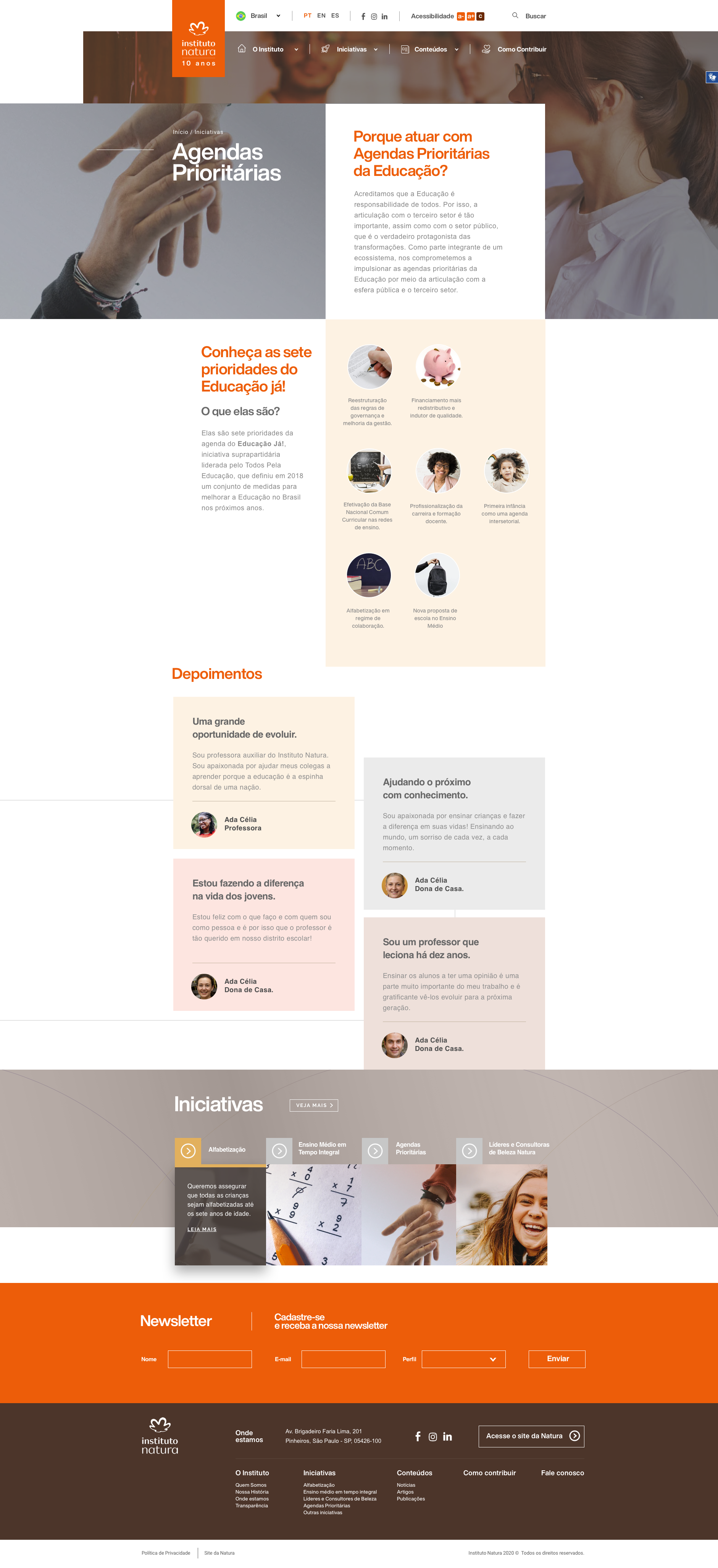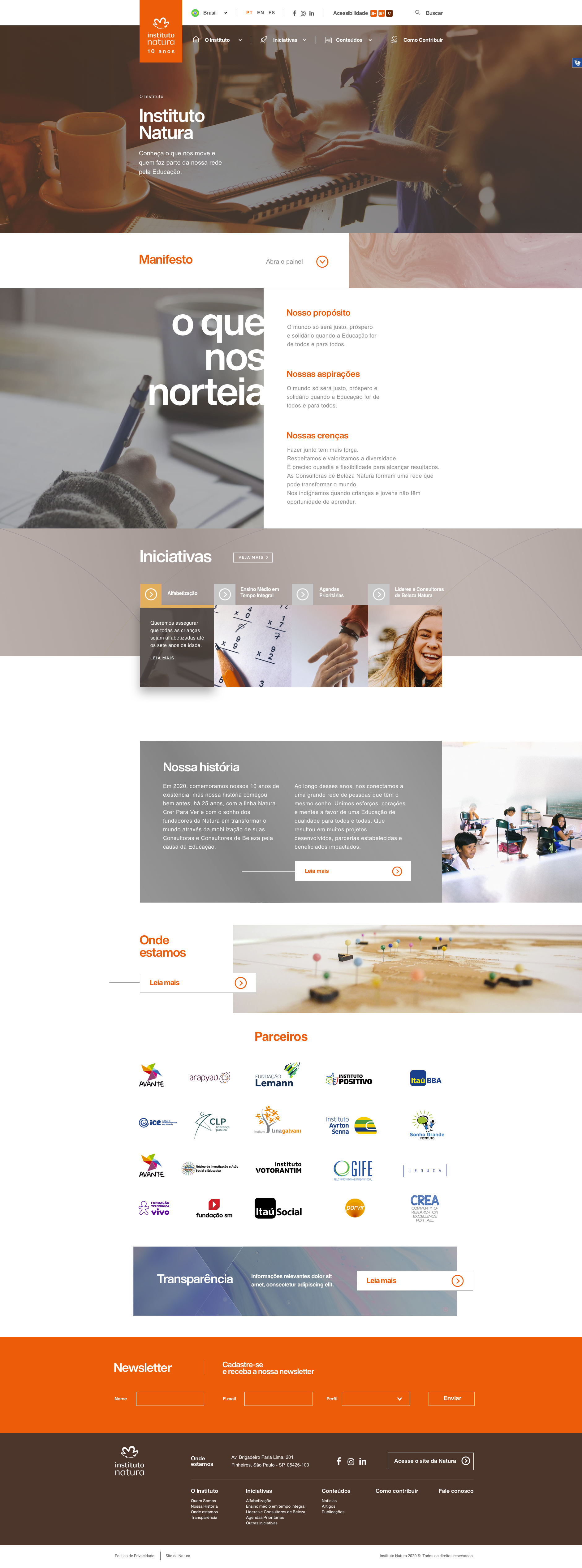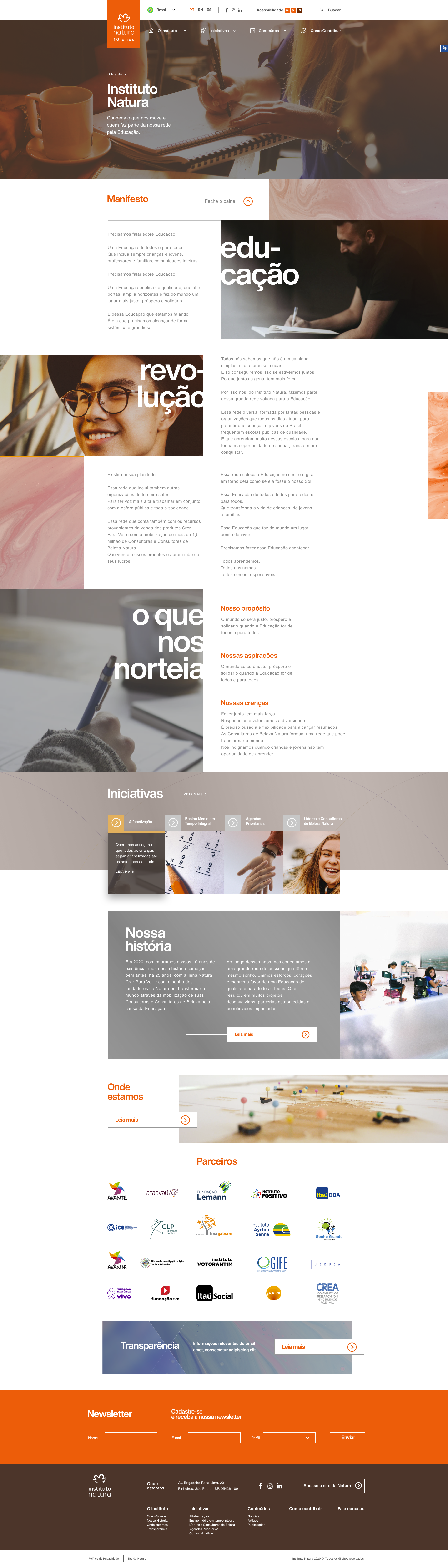 O site do instituto foi diagramado para ser um espaço focado em leitura de notícias e longos textos relacionados à projetos voltados para a educação. A diagramação foi realizada com espaçamentos em branco bem distribuídos que tornam a leitura agradável e com imagens bem relacionadas aos temas.
