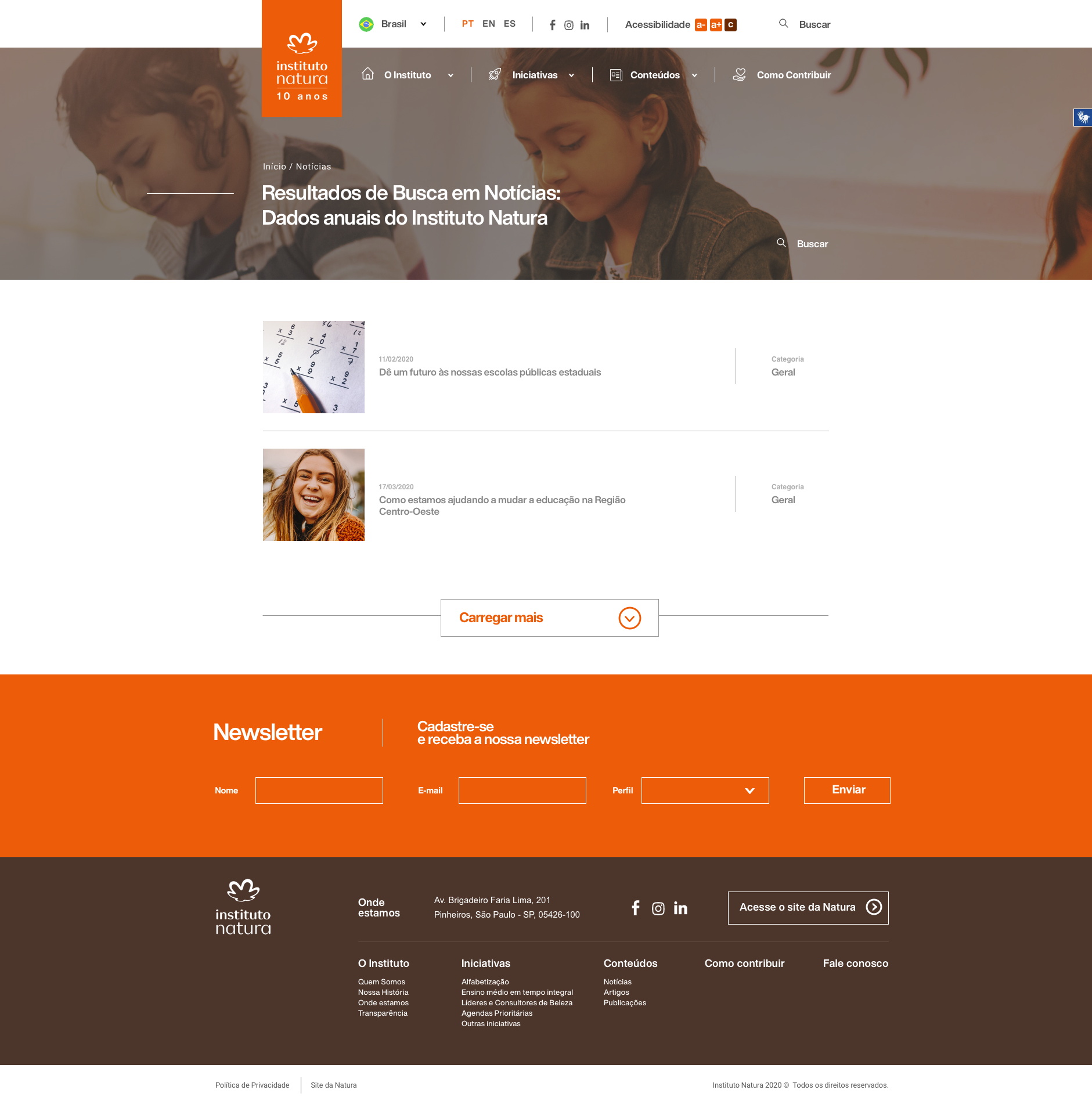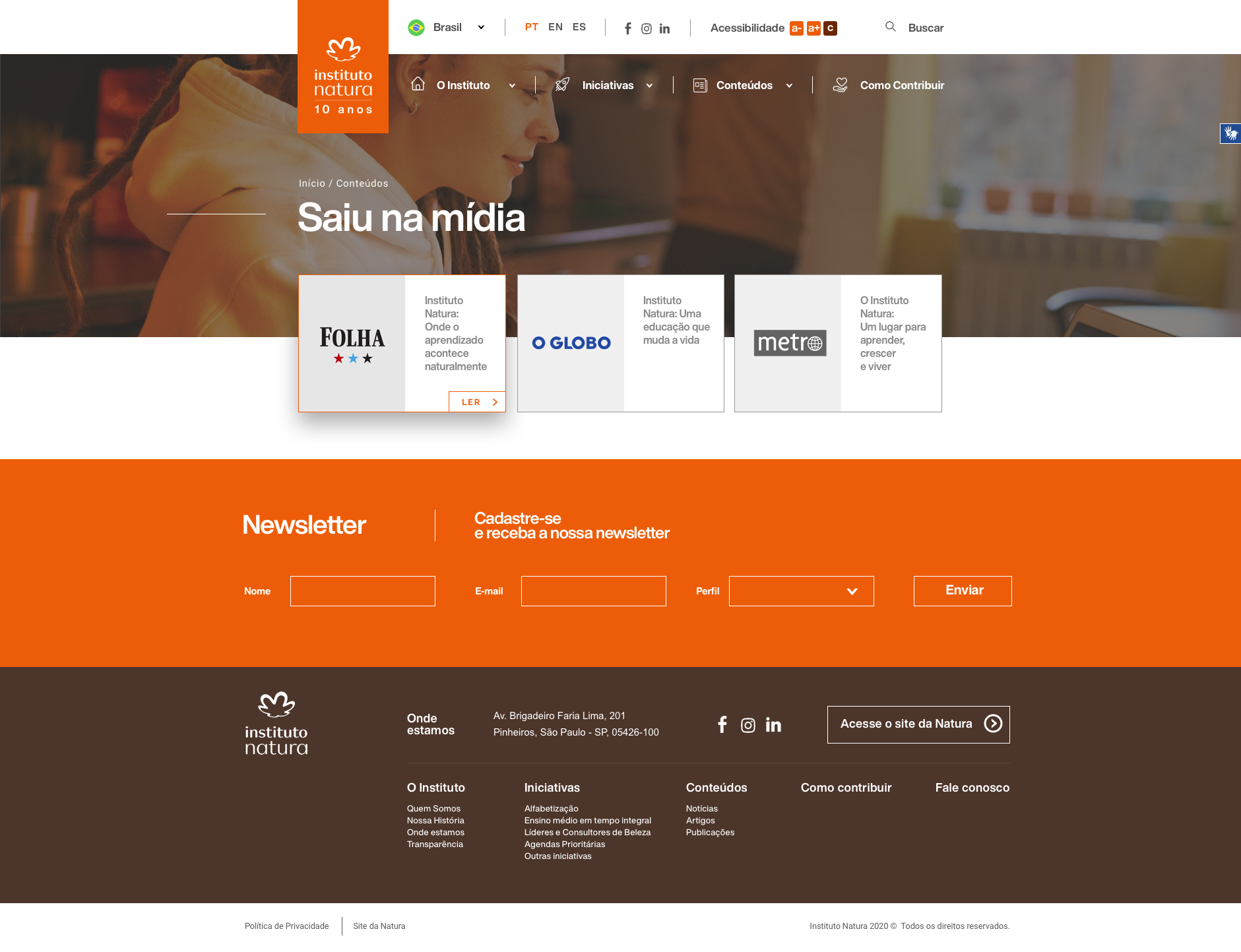 Direciona para notícias sobre o Instituto e outros textos, como política de privacidade e fale conosco.